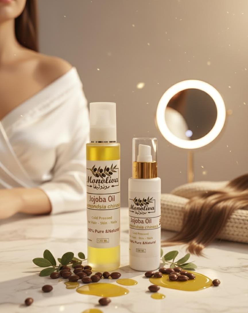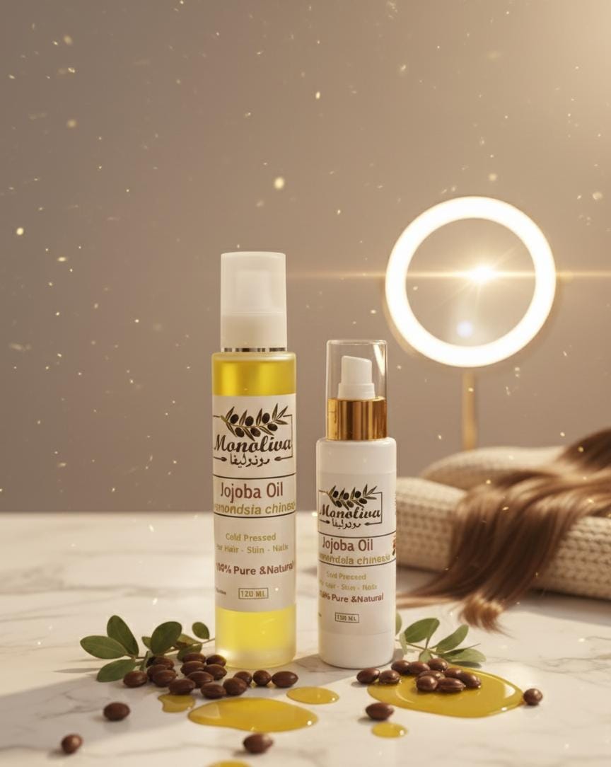 زيت جوجوبا اصلي معصور علي البارد مناسب للتجميل ودهان البشرة والجلد والشعر والاظافر ويعالج الامراض الجلديه