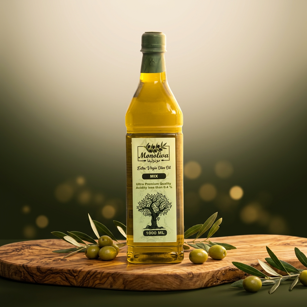 مزيج من زيت زيتون بكر ممتاز صنف كروناكي يوناني وكرتينا إيطالي